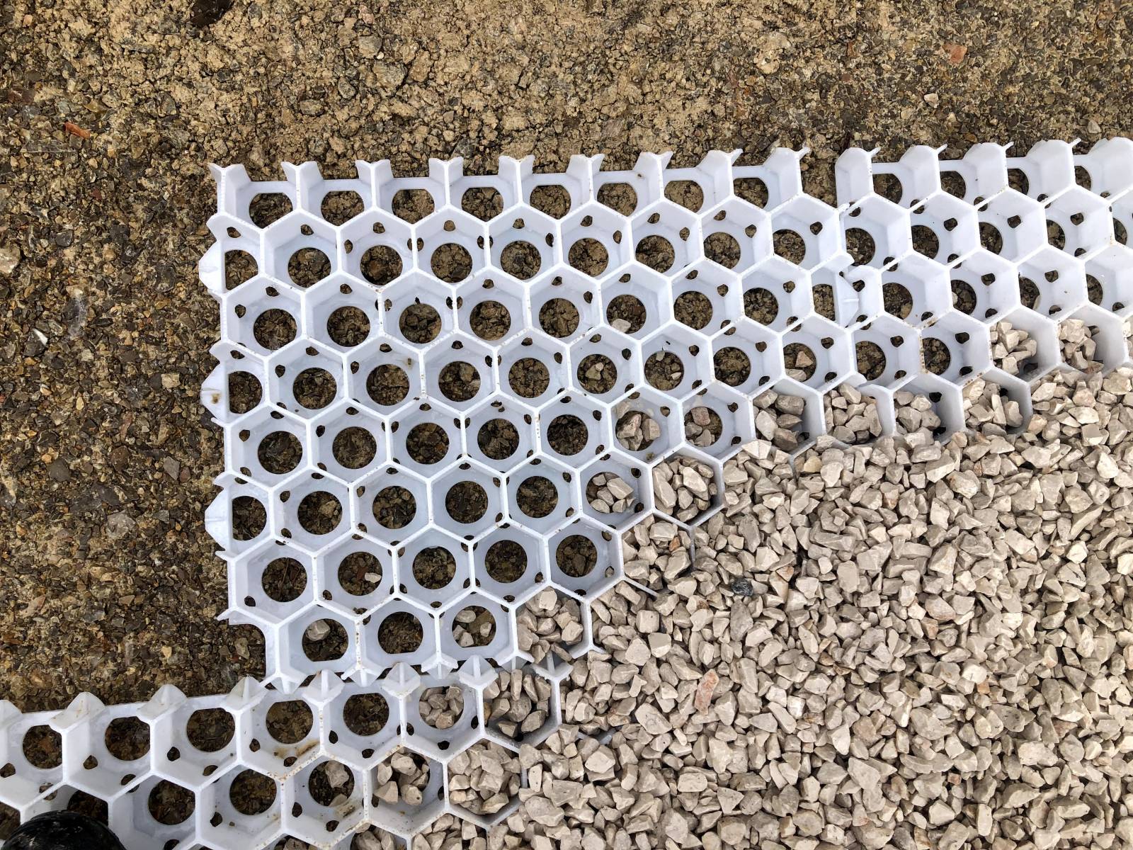 création d'un accès avec dalles alvéolées avec bordures dans une demeure à Draguignan 83.La pose de dalles alvéolées pour la