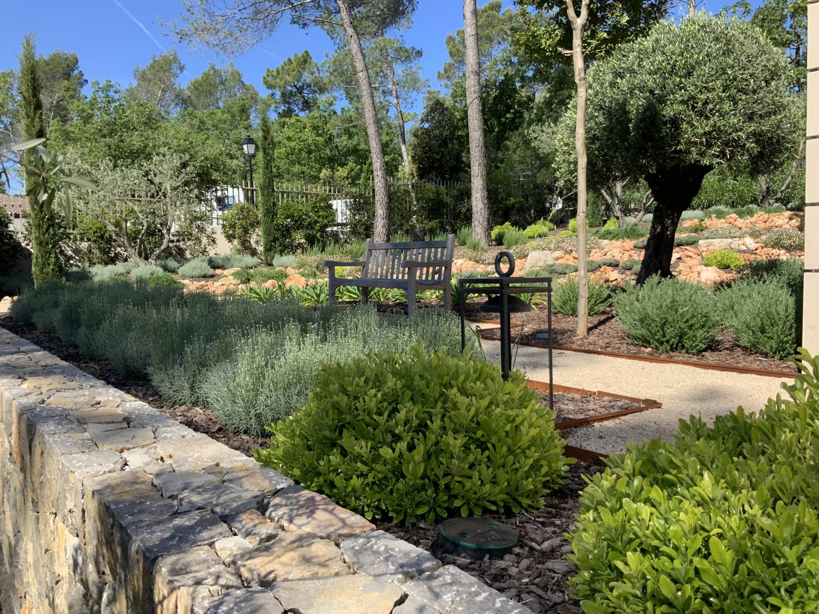 Bordures et murets en pierre ont été montés pour délimiter les différentes zones du jardin et magnifier l'ensemble du paysage.