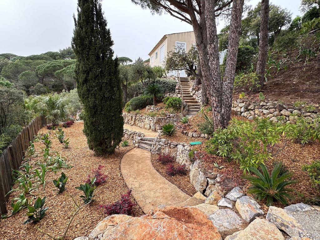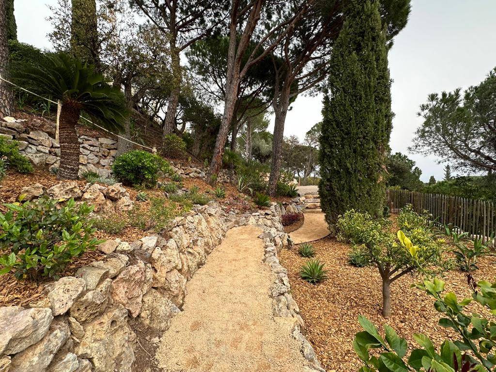 Récemment, Auffray Paysage a été sollicité pour remettre en état le jardin d’une villa rénovée pour la location à Saint-Tropez. Nous avons créé deux plateformes en blocs d’enrochement, idéales pour structurer le terrain. Le cheminement du jardin a été réalisé en sable stabilisé, avec des bordures de propreté en corten pour un rendu moderne et épuré. Nous avons également procédé à la plantation de plantes exotiques et méditerranéennes, apportant une touche de verdure luxuriante.