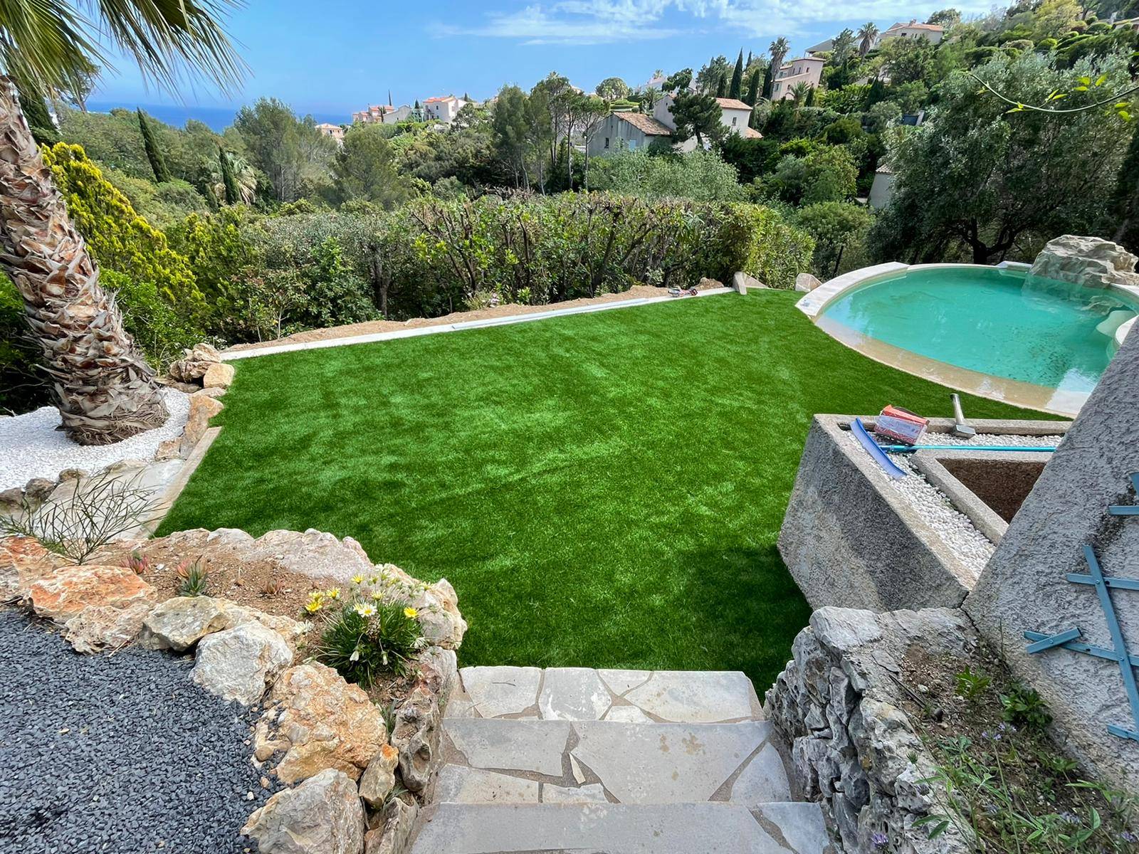 À Fréjus et Saint-Raphaël, Auffray Paysage, Paysagiste et concepteur de jardins sur mesure, excelle dans la pose de gazon ou de pelouse synthétique sur béton. Transformez vos surfaces dures en espaces verts esthétiques et faciles à entretenir grâce à notre expertise reconnue dans le Var.